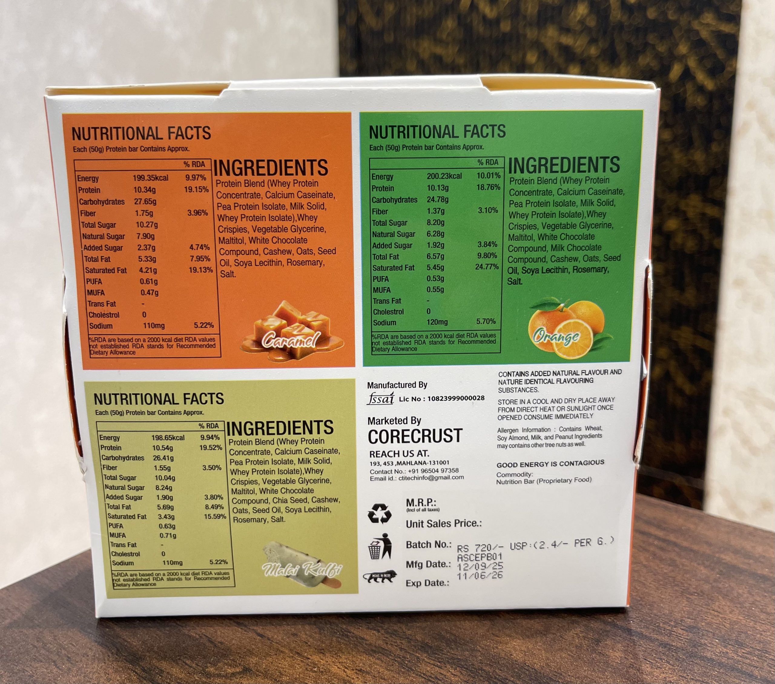 Core Crust high Quality premium protein bars 10 gm protein in one bar weight 50gm each bar pack of 6 bar ( free delivery )